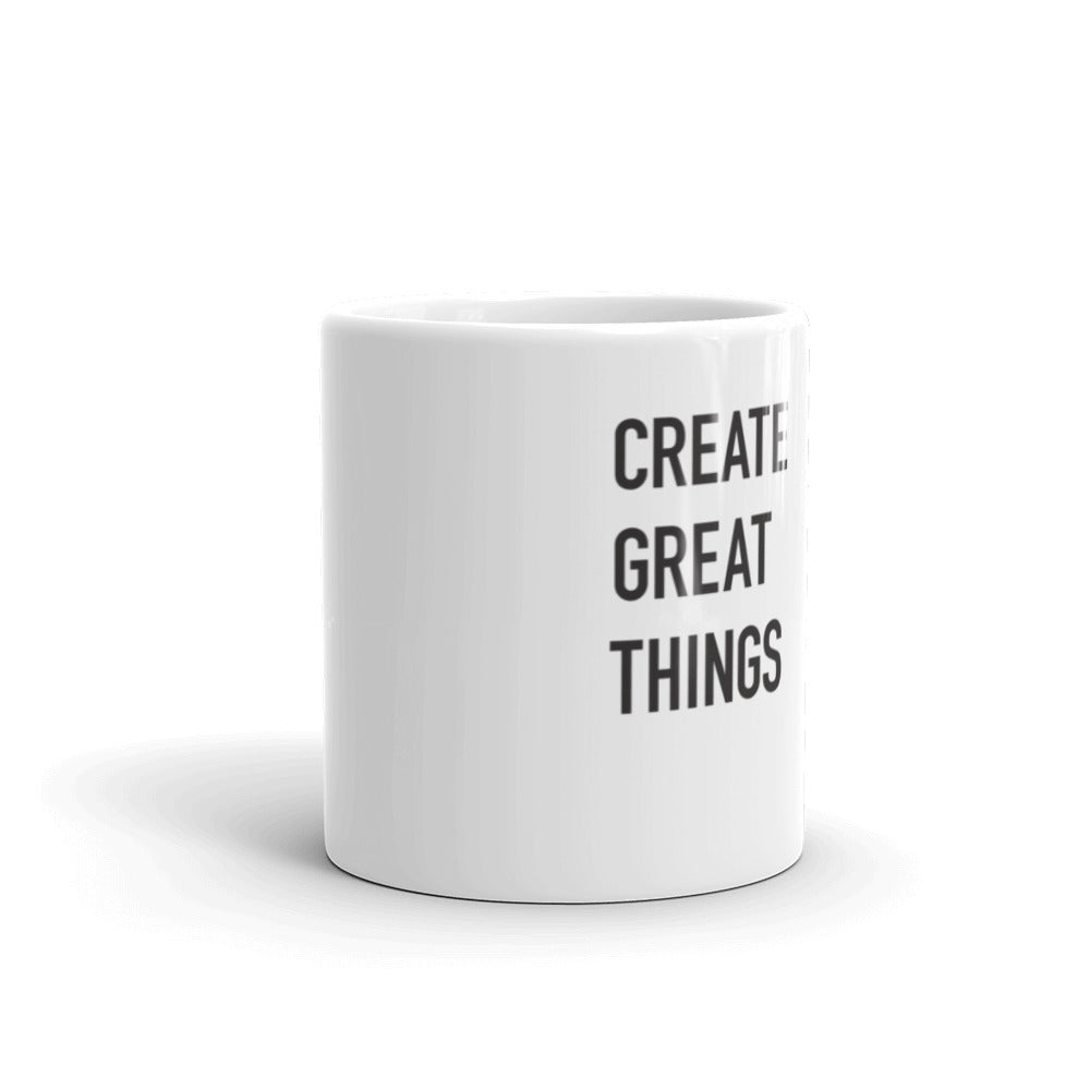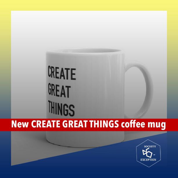 As you’re considering another cup of coffee or tea, and aware of how you’re the type of person who likes to create great things, it’s easy to notice how the new Create Great Things mug from The Society of Exception suddenly caught your attention like a bright, shiny object that could hold your next beverage, and that means it’s never too late to order this now.